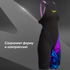 Легкая ткань, усиленная двухслойными проклеенными внутренними панелями, создает умеренную компрессию в области туловища и ног. Идеальный баланс между гидродинамикой и комфортом даже на затянувшихся соревнованиях.